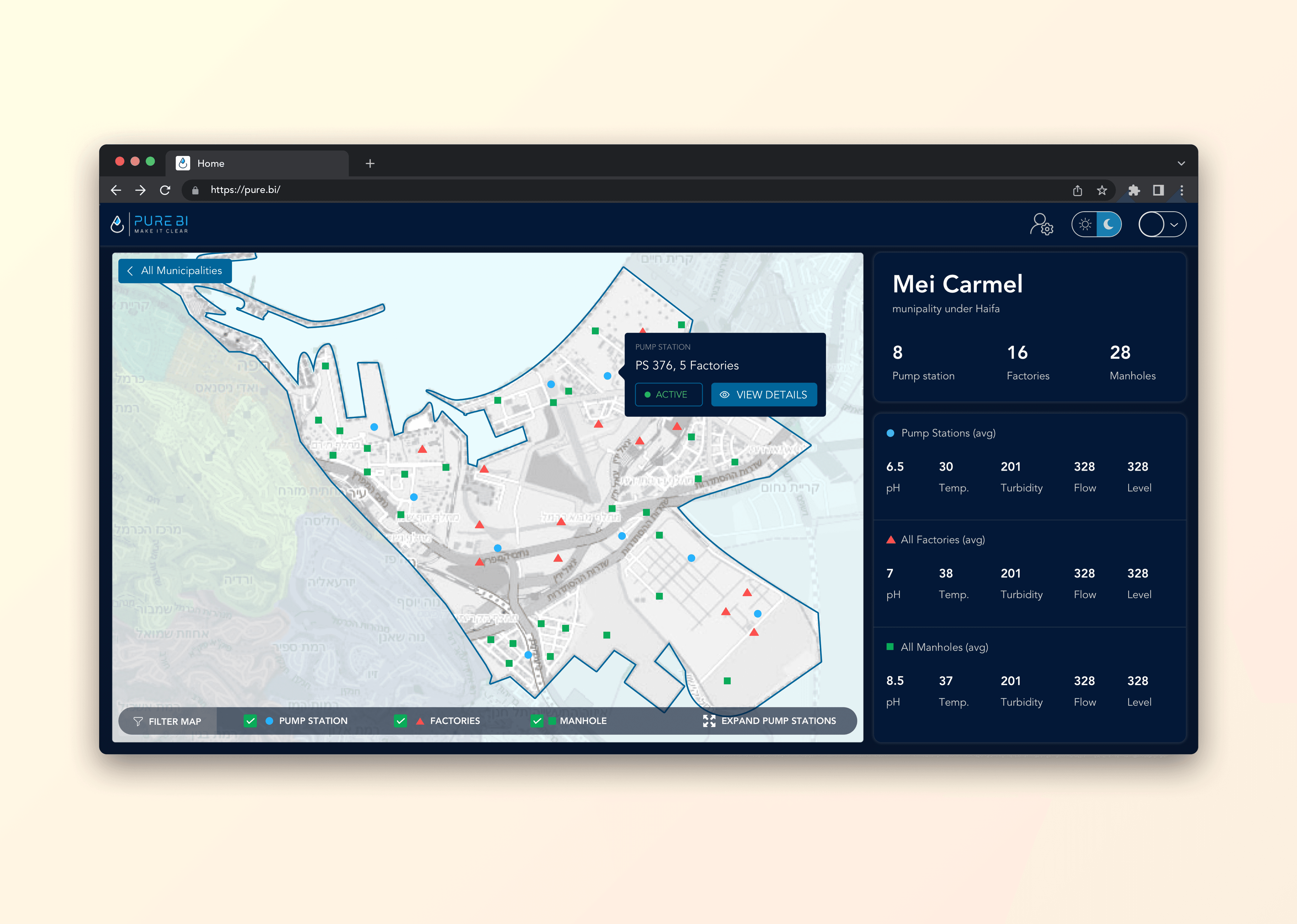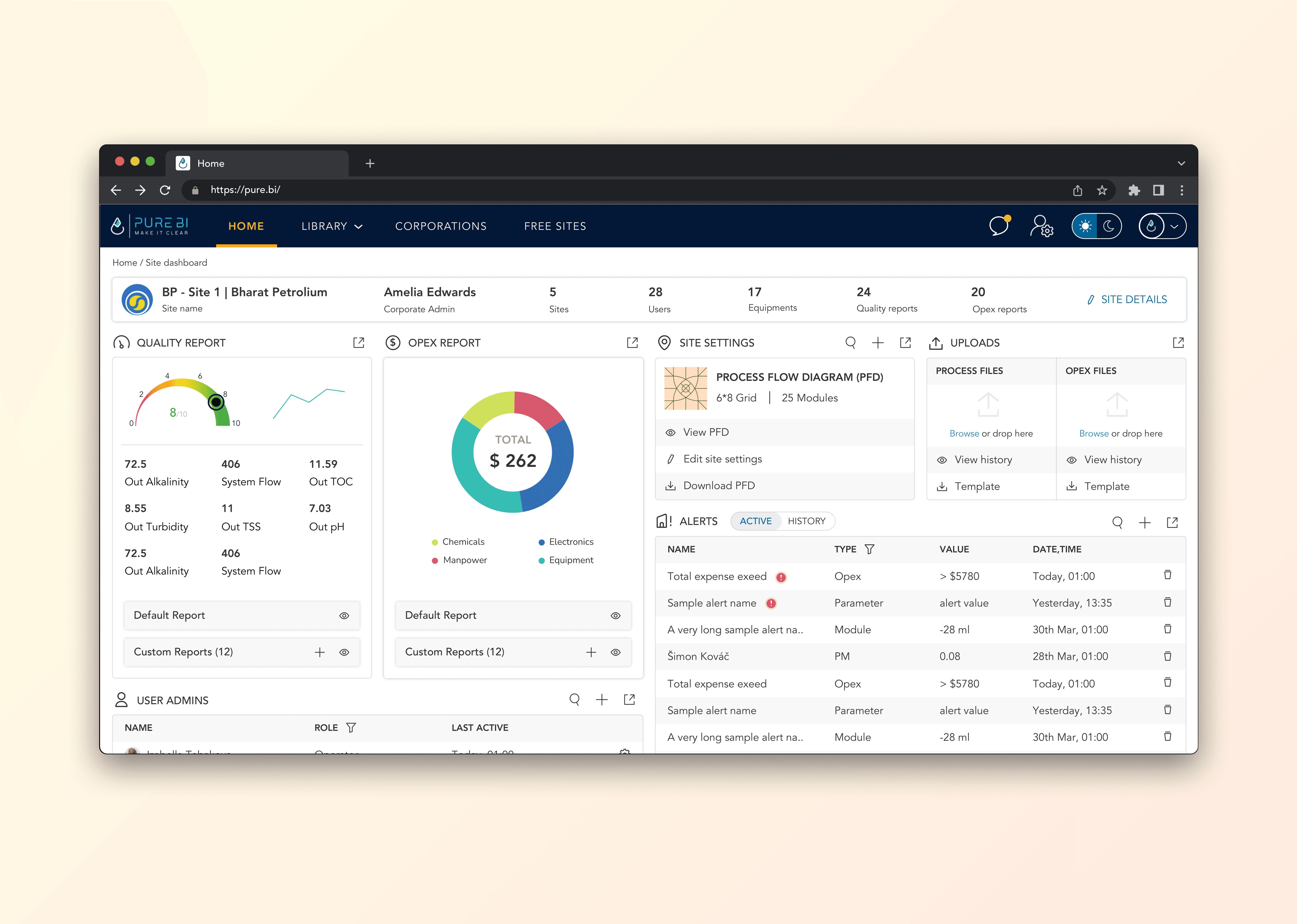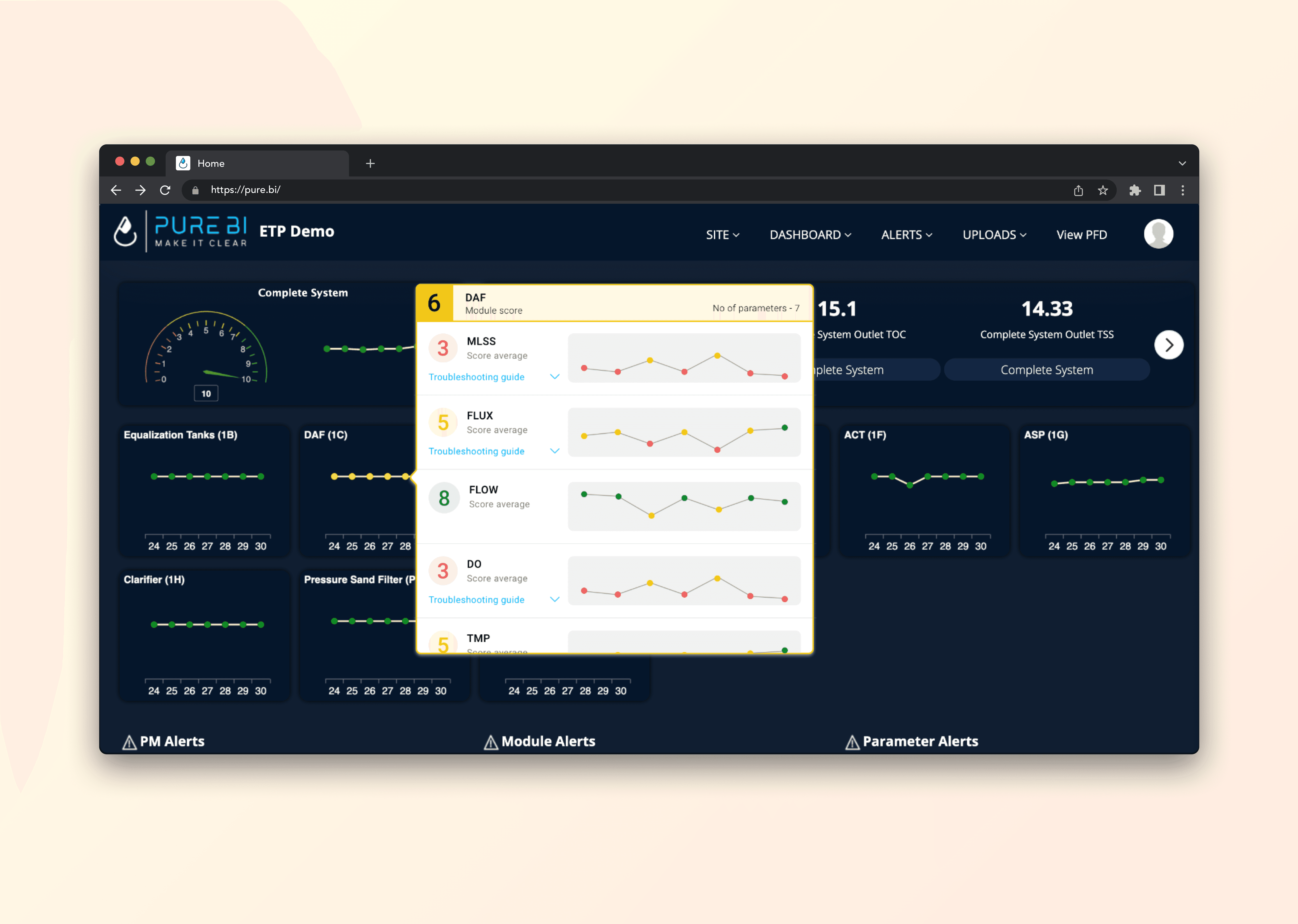 A data platform for water treatment plants that turns complex operational data into clear insights for corporate leaders, site managers, and operators, supporting efficiency and sustainability goals.