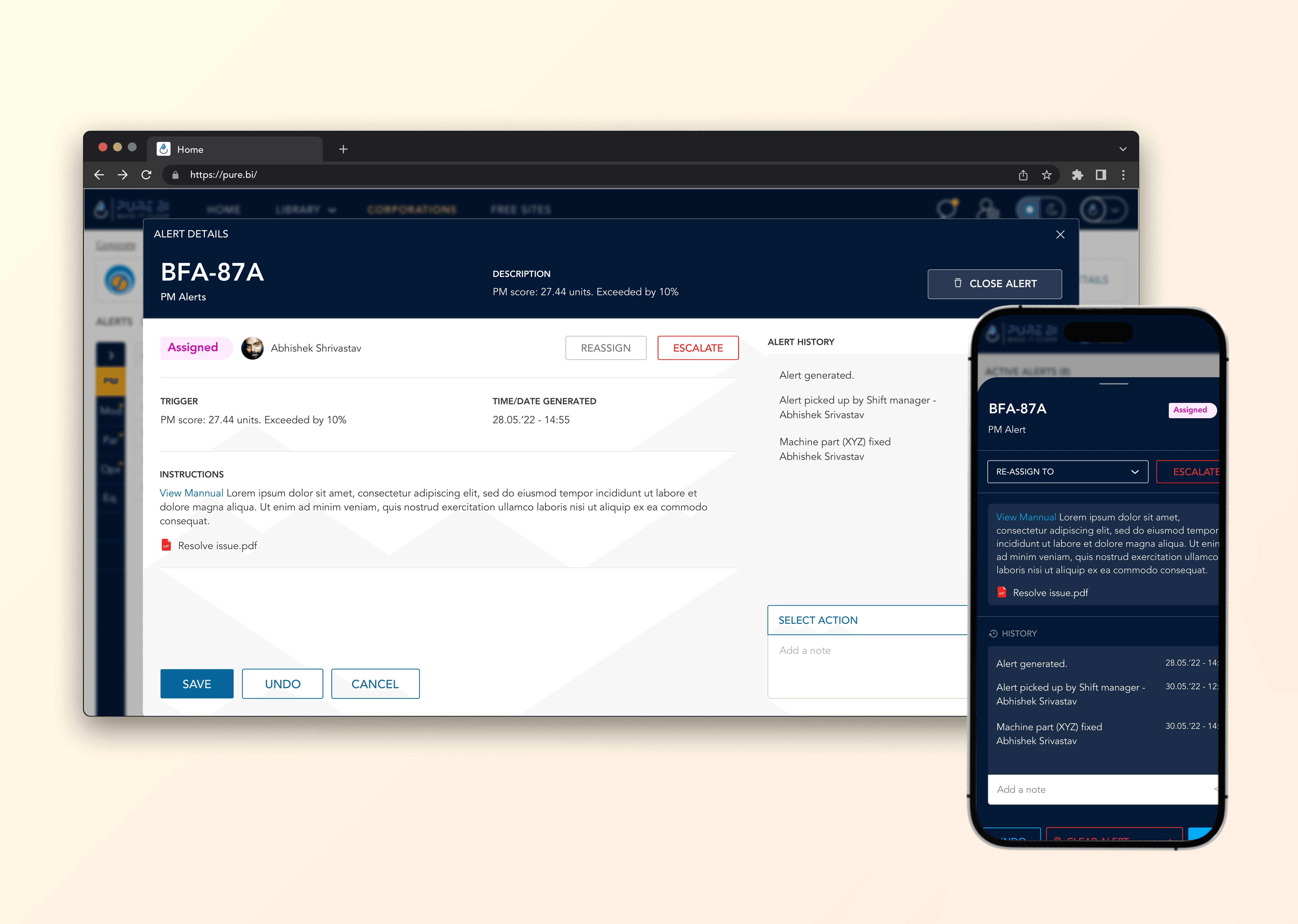 • Operators see real-time plant metrics, alerts, and data upload interfaces to support immediate action on the floor.