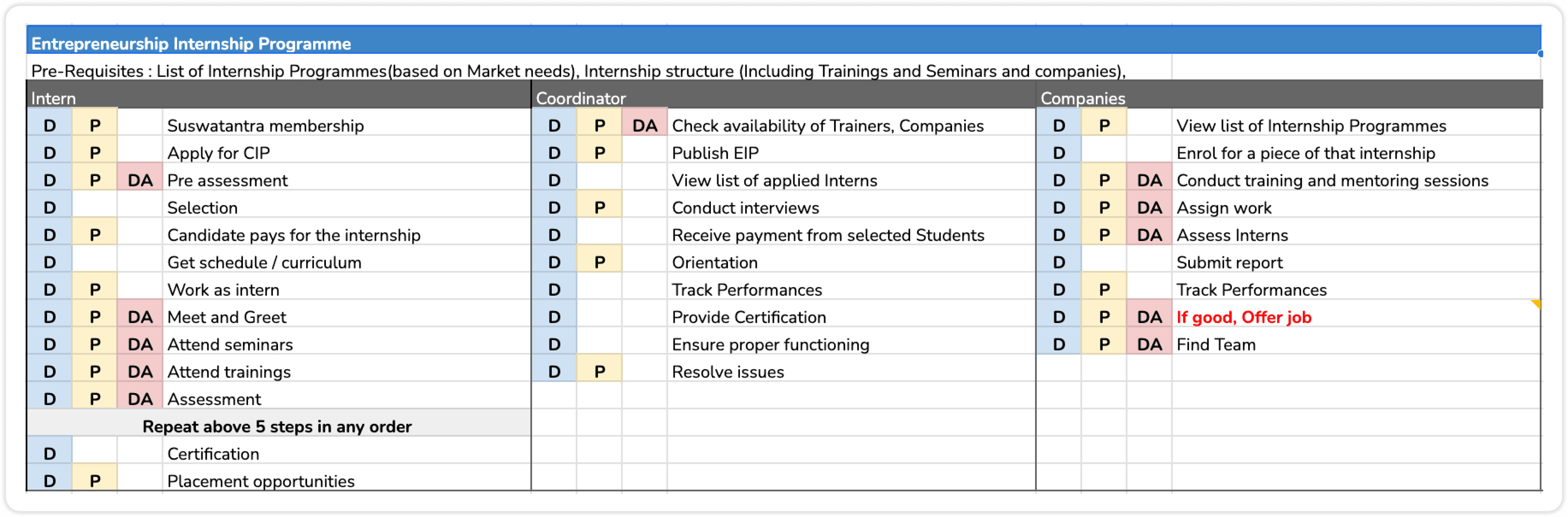 D - Digital touch point ; P - Physical touchpoint ; DA - Digital Aid