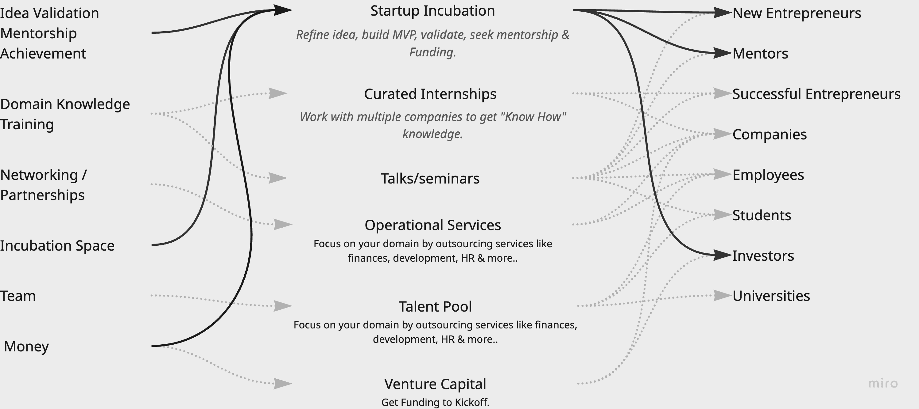 In order to understand the true value of "an entrepreneural ecosystem", Incubators and Co-working spaces were researched.